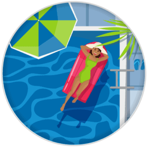 3. Antes de entrar na água meça o cloro livre com a hth® Fita Teste. A faixa segura para uso da piscina é de 1 a 3 ppm de cloro livre. Se necessário, regule a dosagem.